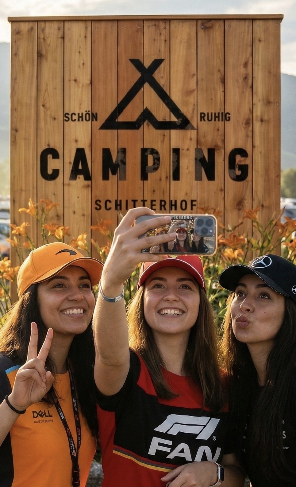 Du wachst auf am schönsten Ort der Welt – zwischen Grillduft und Benzingeruch (okay, zwei sehr unterschiedliche Gerüche, aber hey – DAS ist Formel 1!) – während irgendwo im Hintergrund ein Red Bull‑F1‑Motor schon wieder „GUTEN MORGEN“ röhrt. Willkommen bei F1‑Camping am Red Bull Ring!