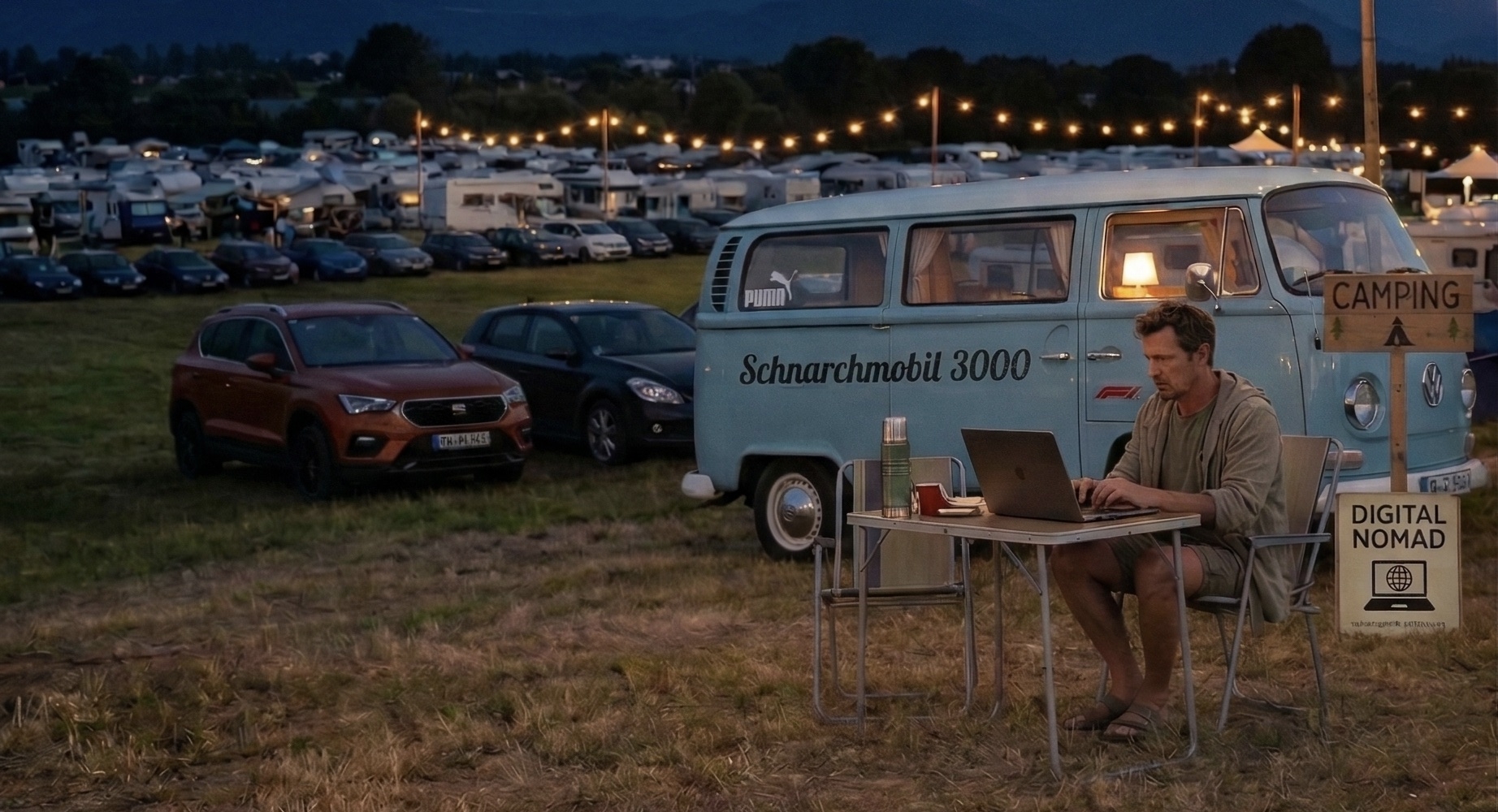 Ich heiße Rennsiegi (ja, wirklich…), mein Camper heißt Schnarchmobil 3000 und meine Mission im Leben ist es… Camping so episch zu erzählen, dass selbst Max Verstappen kurz seinen Motor abstellt und „Gefällt mir“ klickt.